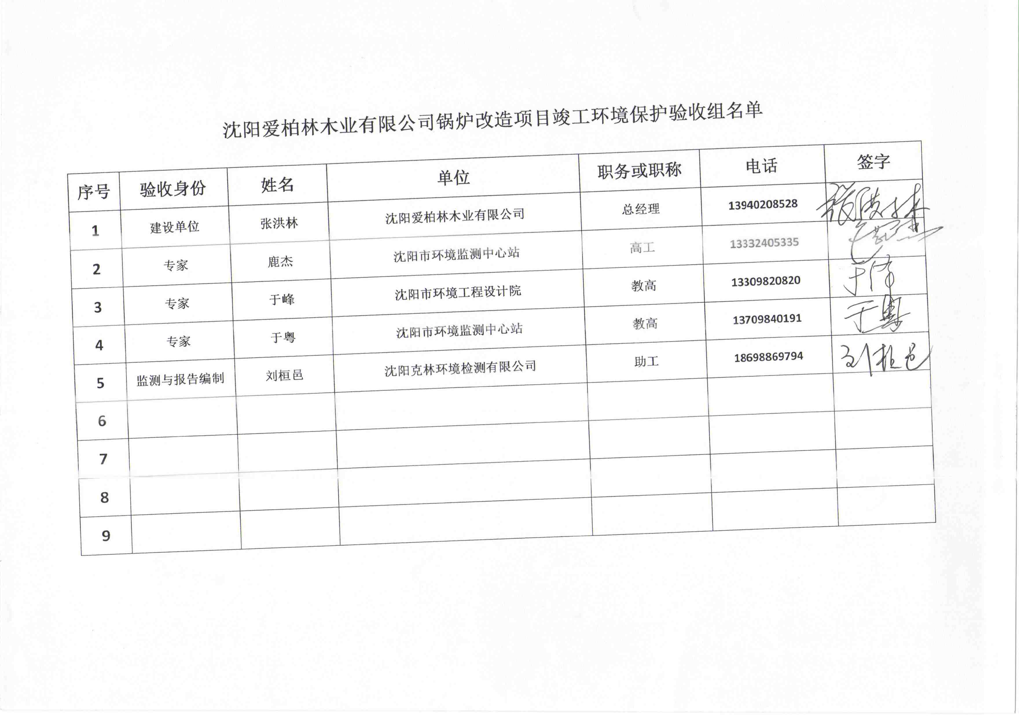 沈阳爱柏林木业有限公司锅炉项目俊工环保验收工作公示